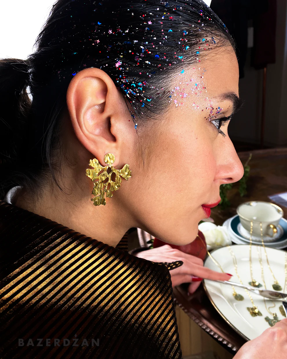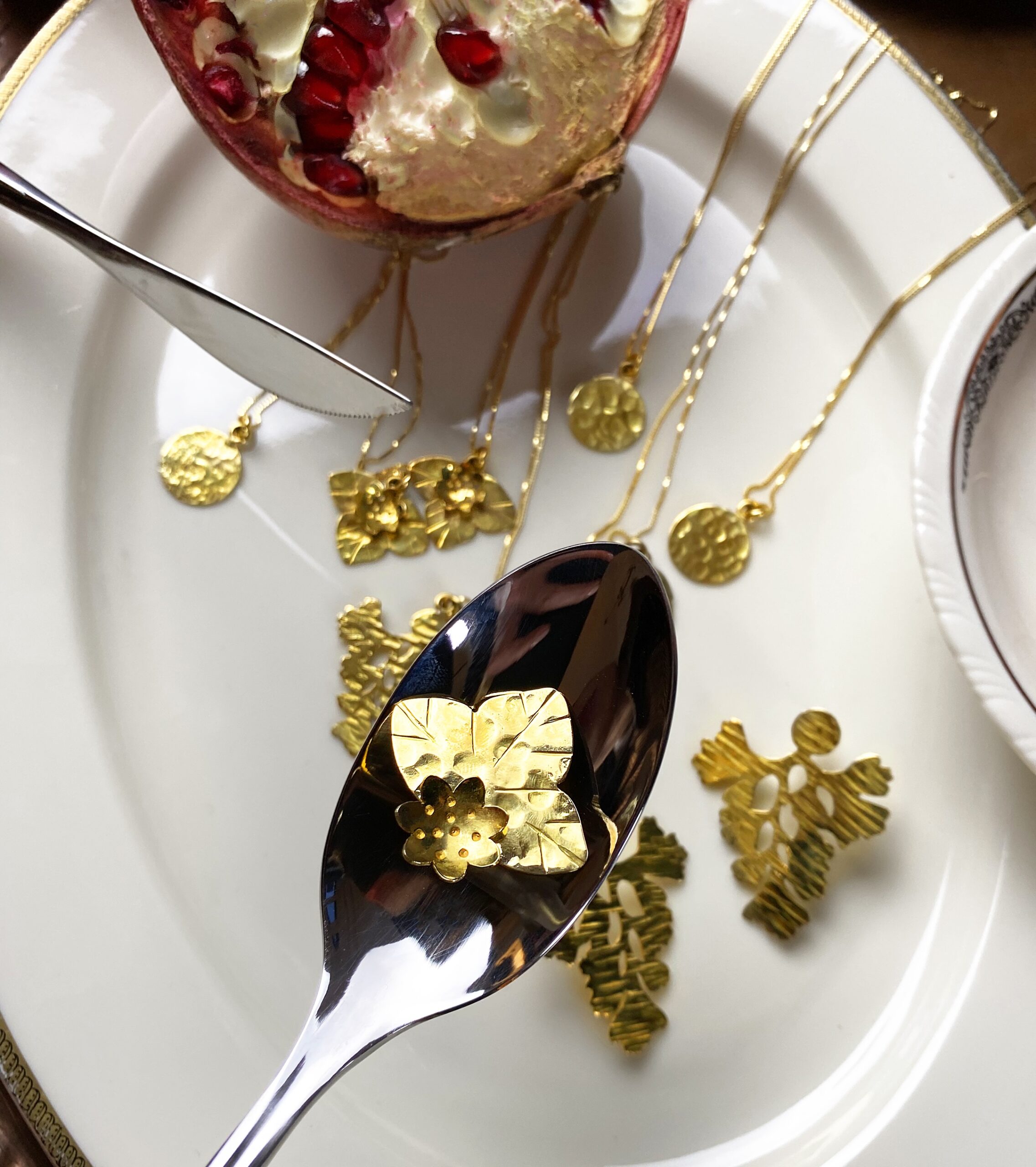 Together, the rings, earrings, and necklace do not function as individual ornaments but as parts of a single sign placed in space. The collection does not speak of tradition as a finished form, but as a living system-one that can be worn, altered, and reinterpreted.